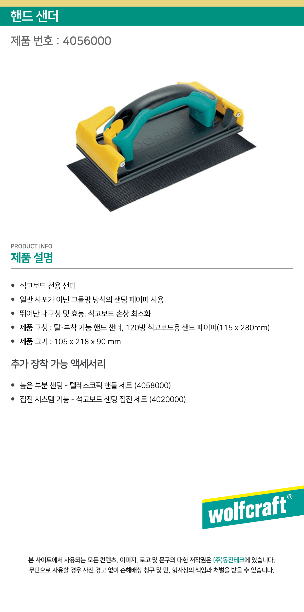 깊이 조절 스크류 (4055000)석고보드 샌더 4각 (8722000)