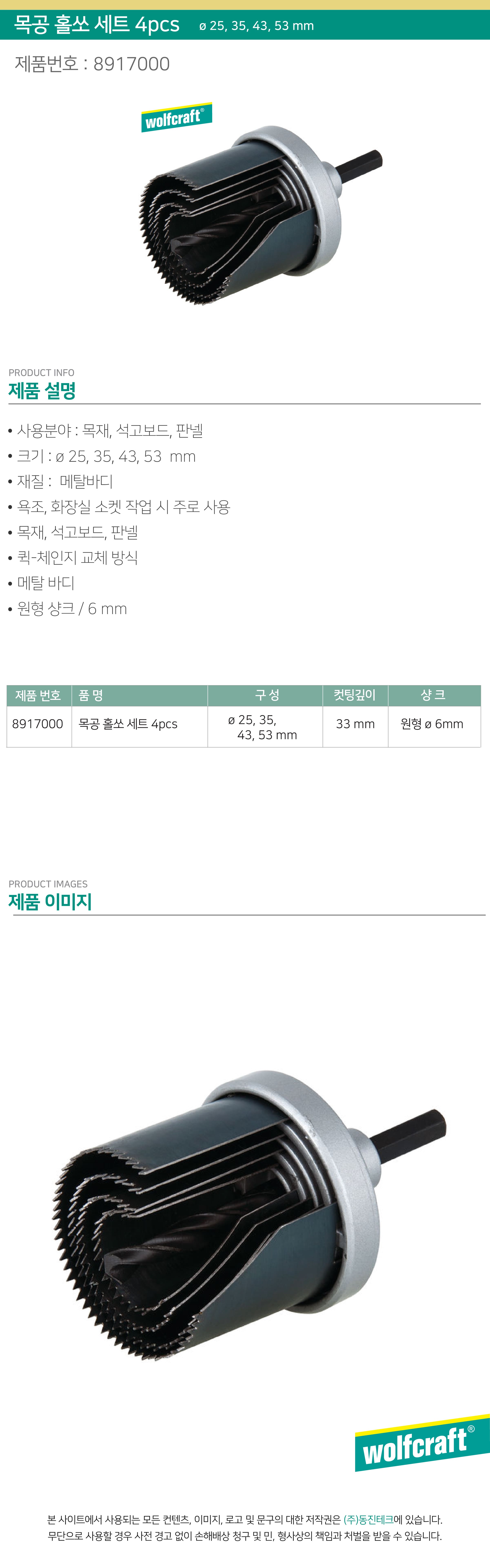 홀쏘 세트 5pcs (8918000)홀쏘 세트 3pcs (8916000)